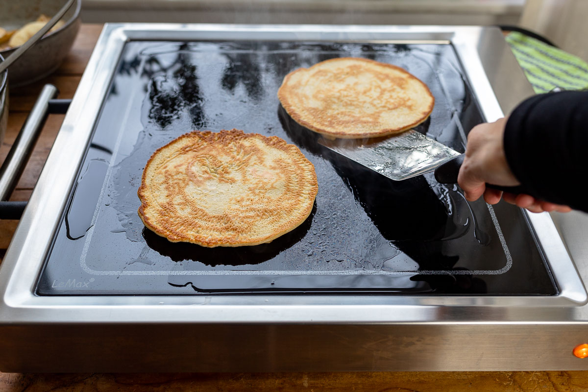 As for making the pancakes, cook the first side until it is golden brown, then flip the pancake and cook on the other side for 1-2 minutes. Voila, it’s that easy.