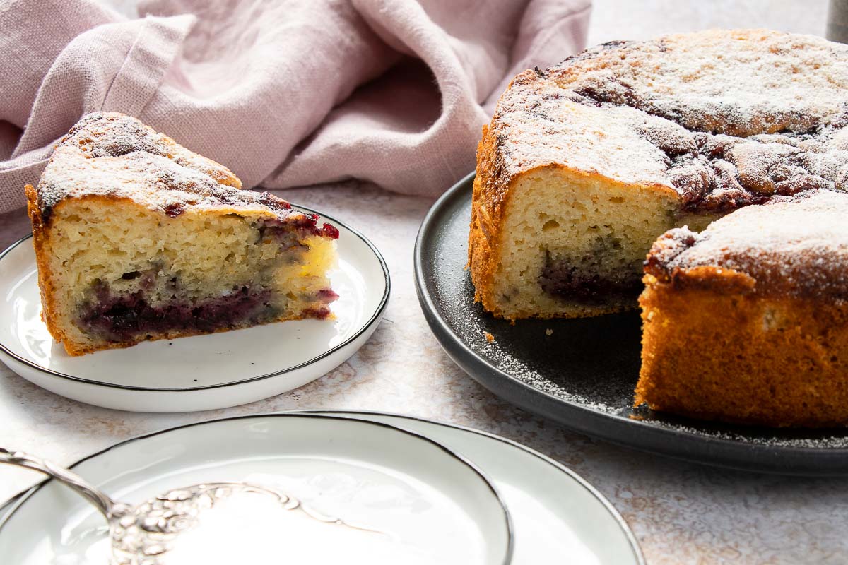 - When using jam with whole berries, they tend to sink to the bottom of the cake as it rises. I lighter jam will have different results. Also, the sweetness of the cake will depend on the type of jam used.