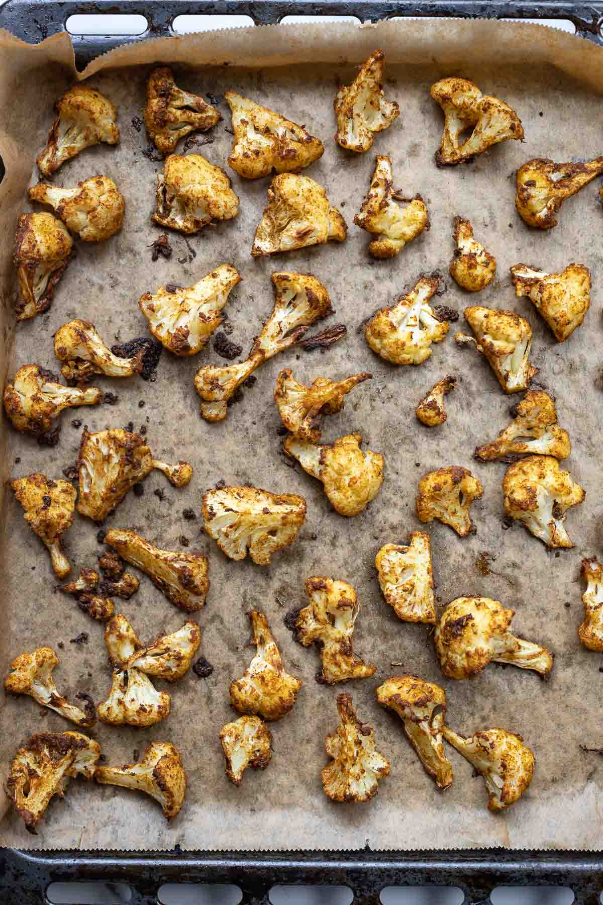 Roast, tossing once halfway through, until tender and the edges of the cauliflower are lightly browned (25-30 minutes).