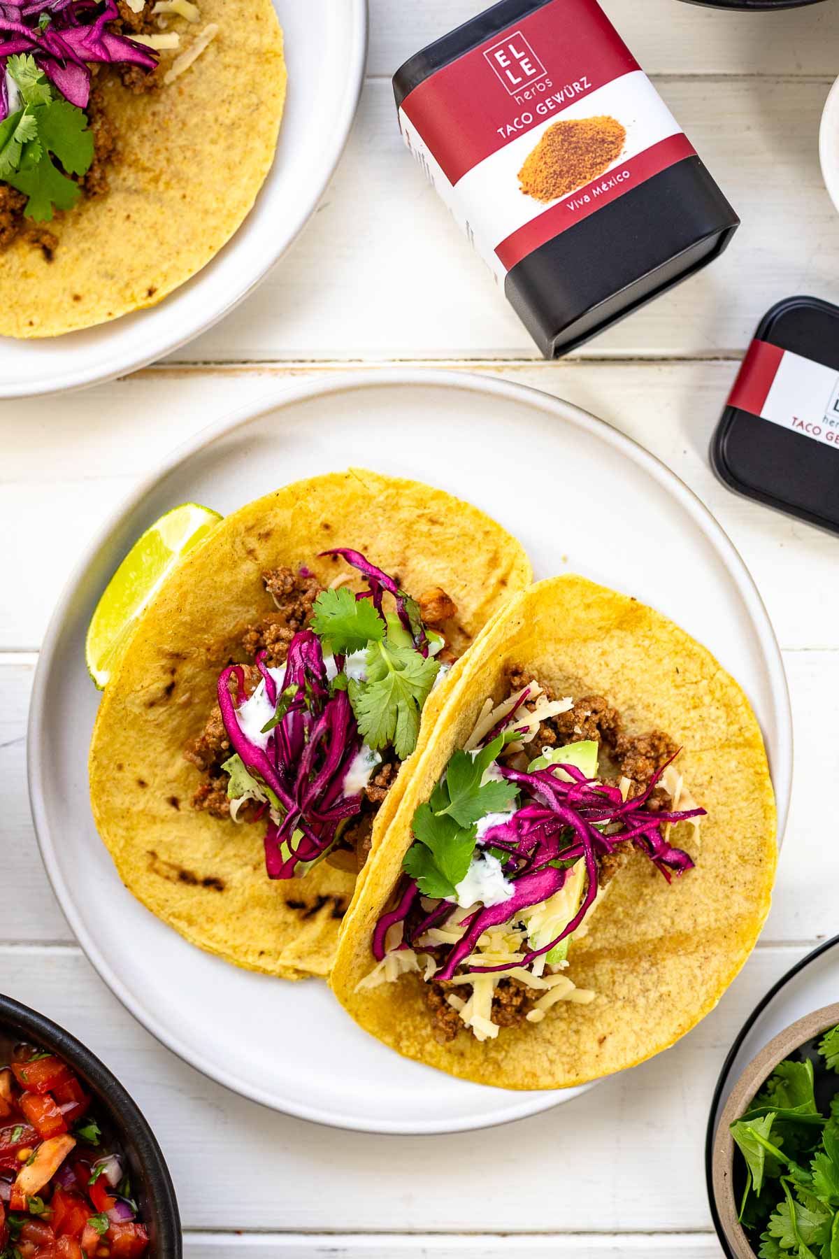 There are countless way to prepare tacos! This is one dish where you can let your creativity flow. Sometimes I go the simple route of just beef, taco spice, lime and cilantro, other times I make a saucy version with a tomato sauce base. This version is something in between. The main difference is that, in this version I am using my very taco spice blend. An all-in-one blend from Elle Herbs. A blend that gives dishes that Mexico feeling and flavor, but decent enough to be enjoyed by the whole family. The habanero chili isn’t hot enough to burn down houses.
