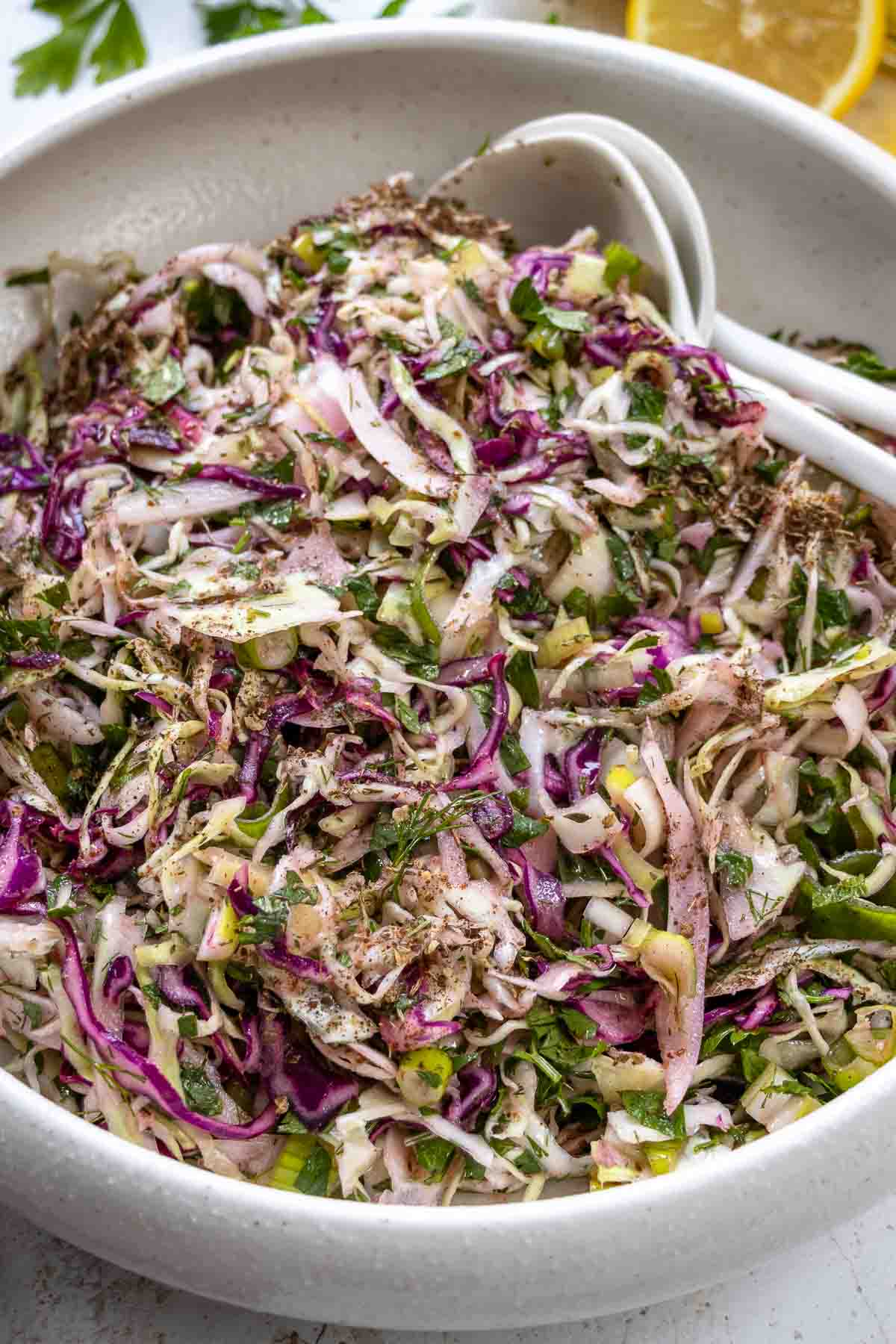 This Lebanese Cabbage Salad (Malfouf Salad) is a crisp, zesty side made with shredded cabbage, fresh herbs, lemon, and za’atar. Quick, healthy, and full of flavour, it’s the perfect companion to almost any meal.