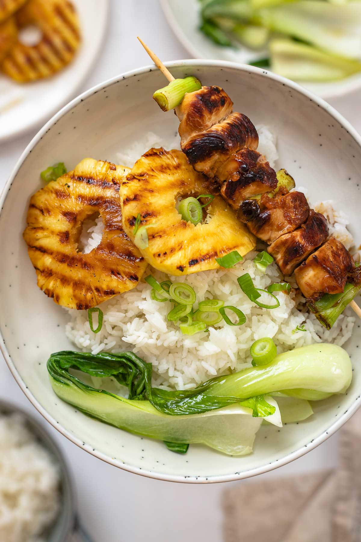 I personally love to serve these tasty chicken skewers with steamed rice and grilled vegetables (such as bok choy / pak choi, asparagus, or green onions) as well as grilled pineapple as an asian-style bowl meal. But you could also serve it with Miso Roasted Carrots and Parsnips, or Miso Glazed Eggplant (Nasu Dengaku) or a Miso Kohlrabi Apple Salad for a light meal. I wouldn’t skip the rice, as the marinade is so good, you’ll want to drizzle extra flavor on every single bite!