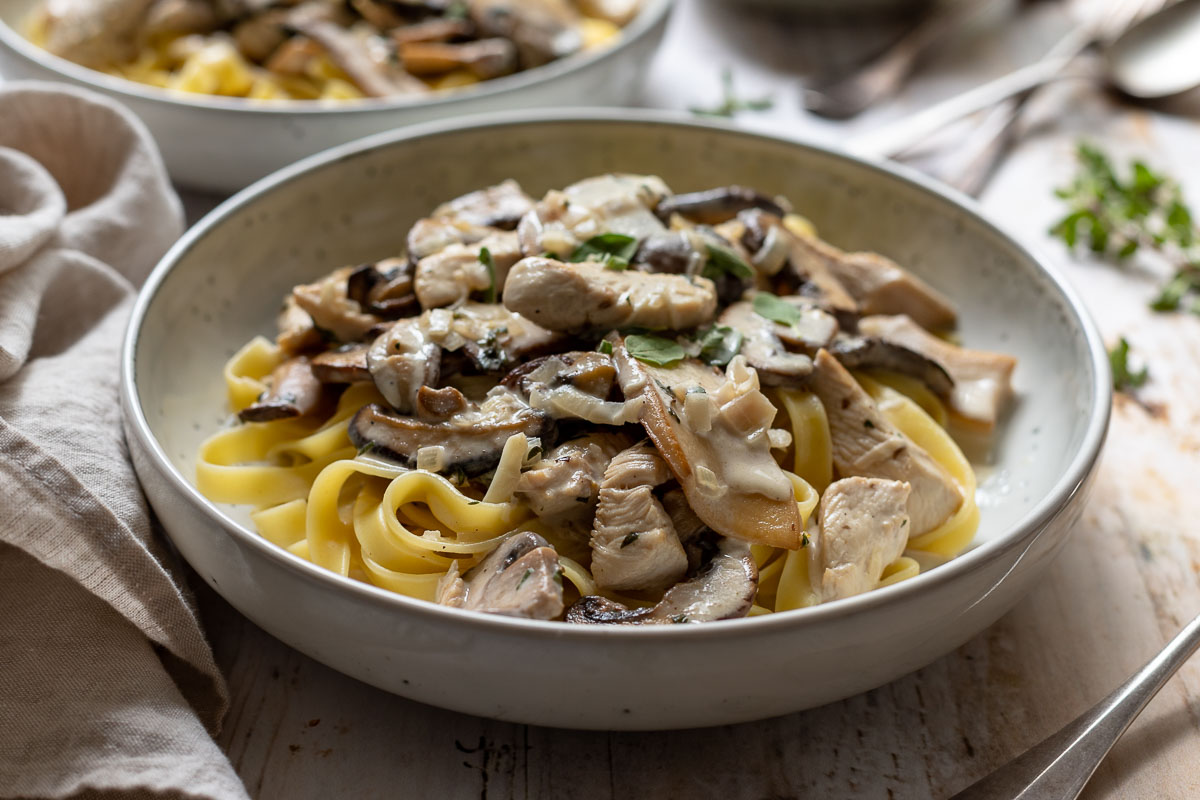 Zurich Ragout—or Zürcher Geschnetzeltes in German–is is a typical Swiss dish. In my version, this simple ragout or stew recipe is made with thinly sliced turkey breast, rather than veal fillet. It’s served in a creamy mushroom sauce made with white wine, cream, fresh tarragon and a hint of lemon. It‘s a hearty and delicious meal that is quick and easy to prepare, making it the perfect weeknight choice for the whole family.