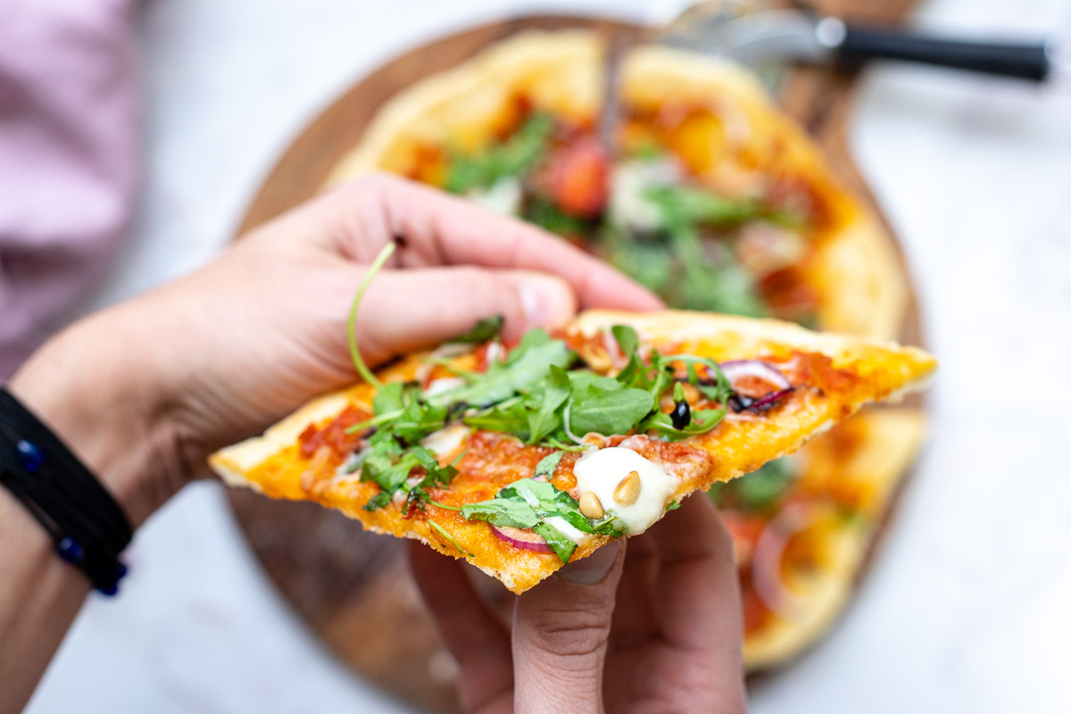 Und ich habe noch eine gute Nachricht für dich. Denn die dünne knusprige Pizza ist auch noch gesünder als herkömmliche Pizzen. Das liegt daran, dass du weniger Teig brauchst und damit weniger Kalorien zu dir nimmst. Wenn du also an deiner Strand-Figur arbeiten willst, kann ich eine dünne Pizza nur empfehlen.