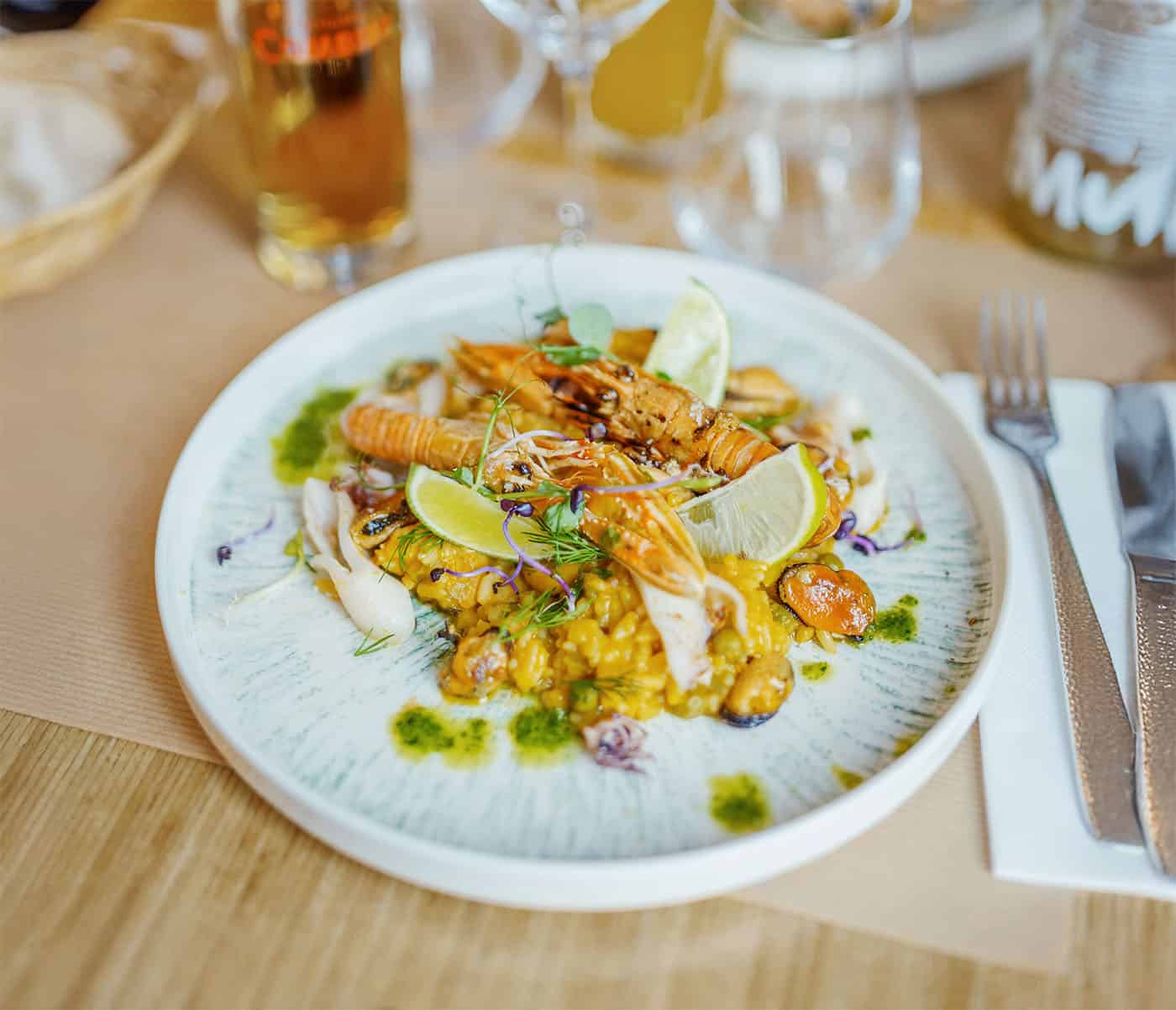 Yes. While a paella pan helps with that signature crispy bottom layer, a large sauté pan or skillet works just fine — just avoid stirring too much so the rice can develop texture.